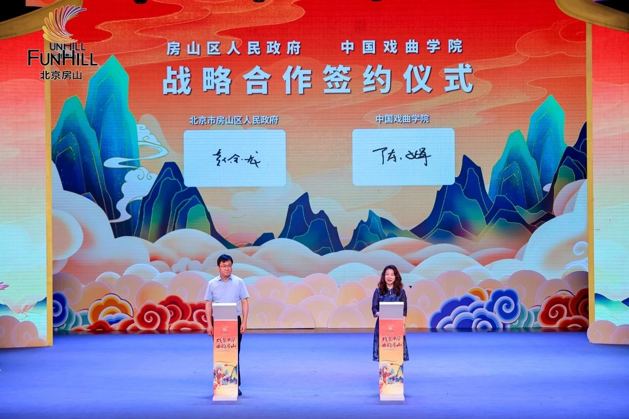 8月20日,我校与北京市房山区人民政府战略合作签约仪式、“戏聚中华 曲韵房山”2025房山区第五届京津冀精品戏曲展演暨戏曲进乡村活动开幕式在房山区文化活动中心梦想剧场盛大启幕。市文化和旅游局班子成员、二级巡视员常林,校党委常委、副院长、附中党委书记陈娟,房山区人大常委会副主任王耕,副区长赵金龙,区政协党组副书记、副主席杨冬立,区文化和旅游局党组书记、局长梁义国,学校党院办公室、交流合作部、艺术实践管理中心、京昆系、附中等有关负责同志参加。本届活动由北京市文化和旅游局、房山区人民政府、我校指导,房山区委宣传部、区文化和旅游局、区文学艺术界联合会联合主办,区文化活动中心、各乡镇街道、区戏剧家协会联合承办。