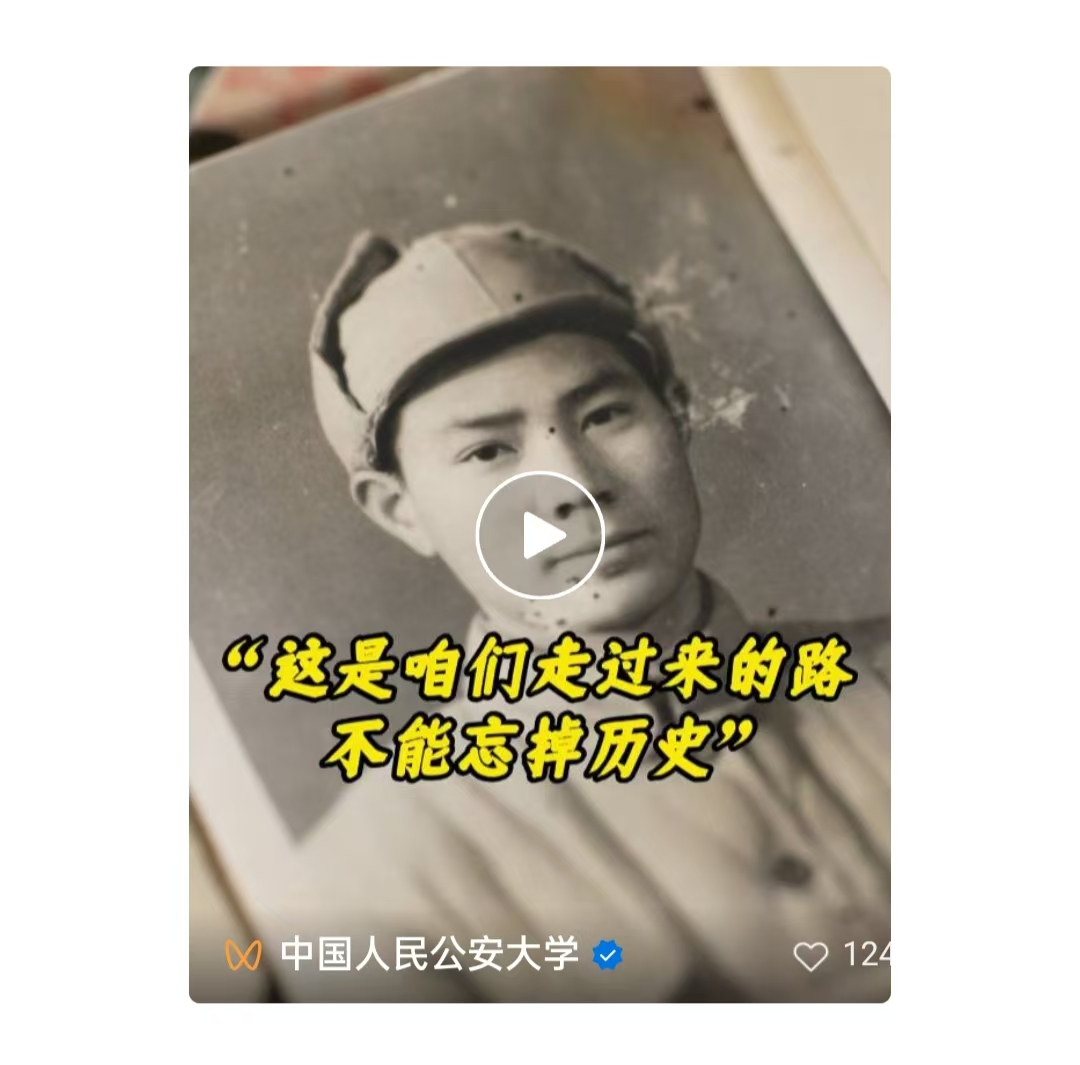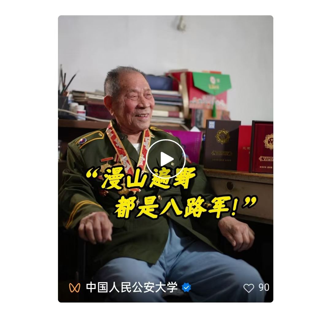 在中国人民抗日战争暨世界反法西斯战争胜利80周年之际,中国人民公安大学96岁的离休干部孙有光,用他跨越世纪的生命轨迹,为我们翻开了一部荡气回肠的民族史诗。重温孙有光老师的烽火岁月,不仅是对一位老战士的深切致敬,更是对伟大抗战精神的继承和弘扬。他是千千万万抗战志士的生动缩影——在山河破碎之时,以家国为念,以血肉之躯筑起保卫民族的不屈长城。