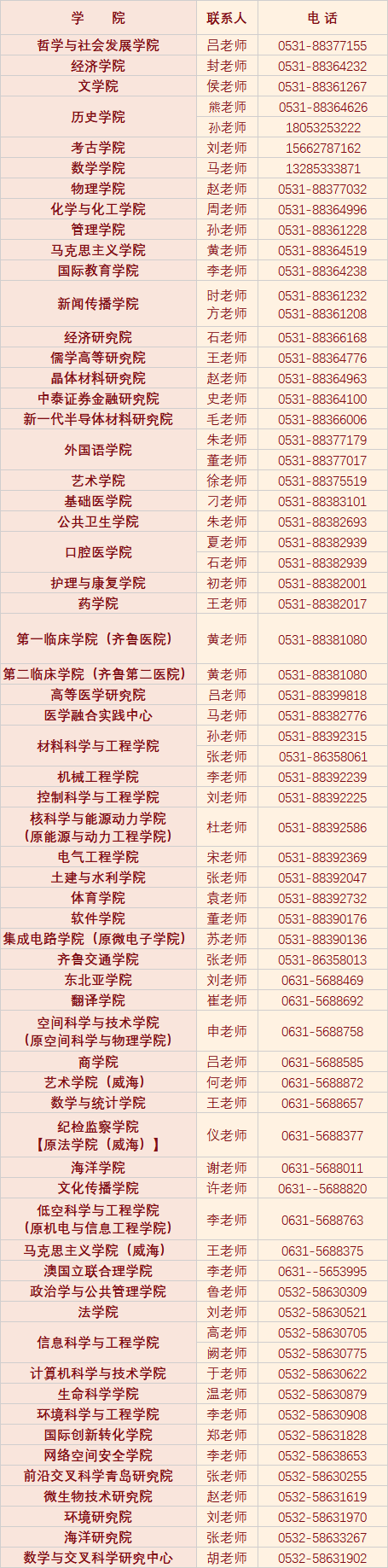 ↓↓ 各学院(研究院、中心等)联系方式 ↓↓